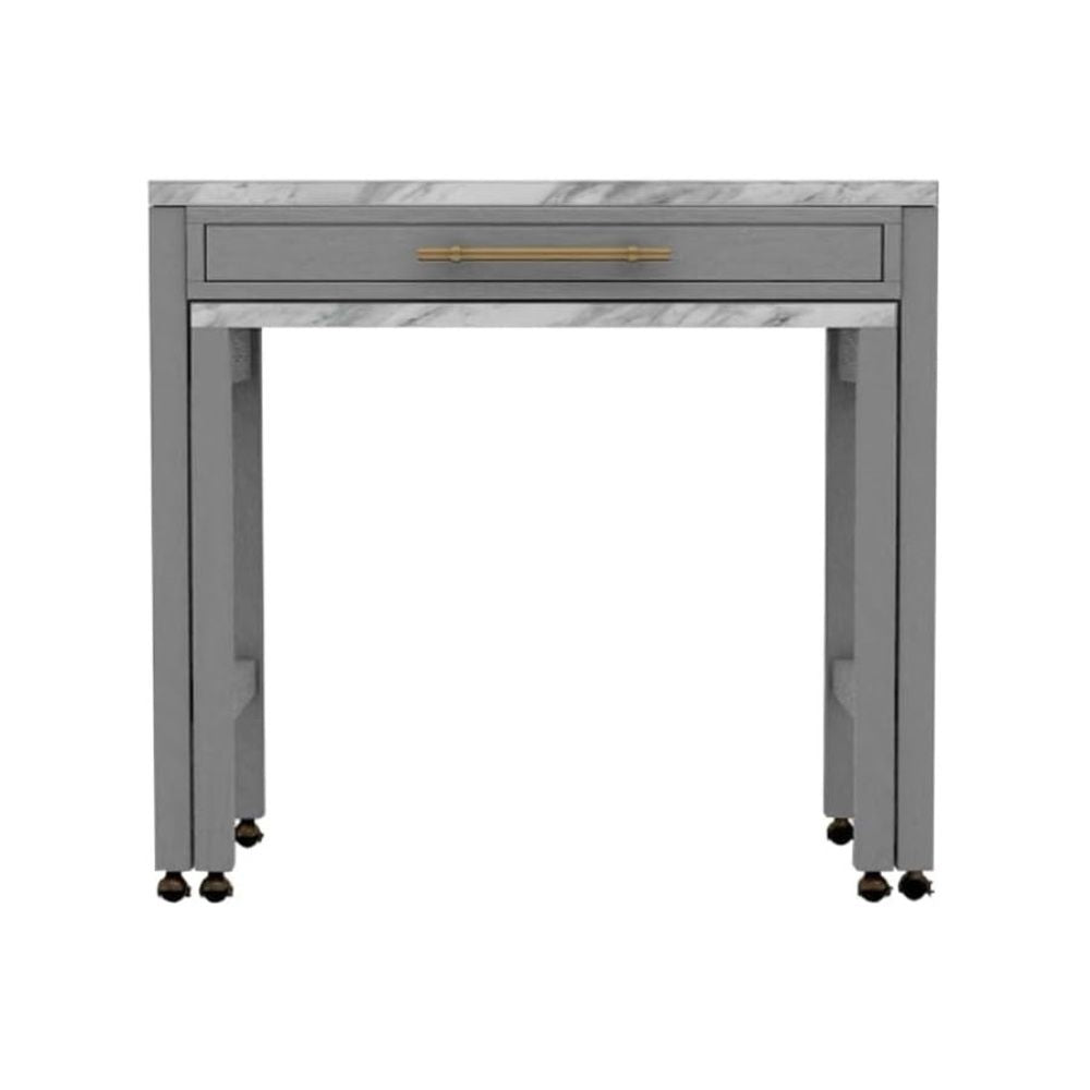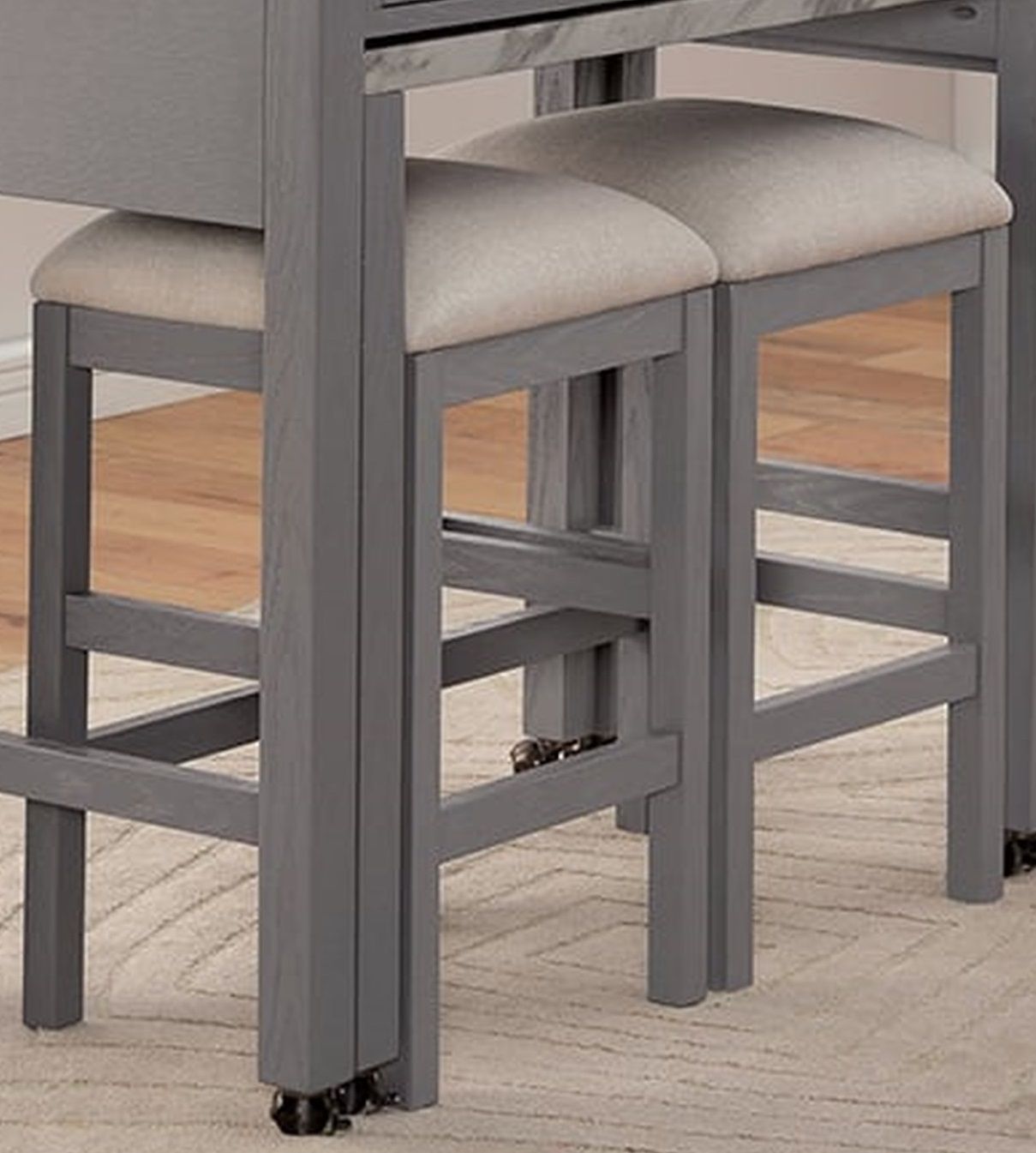 Rustic 5pc Dining Set Counter Height Dining Table w Storage drawer Faux Marble Top 4x Stools Light Gray Dining Room Furniture
