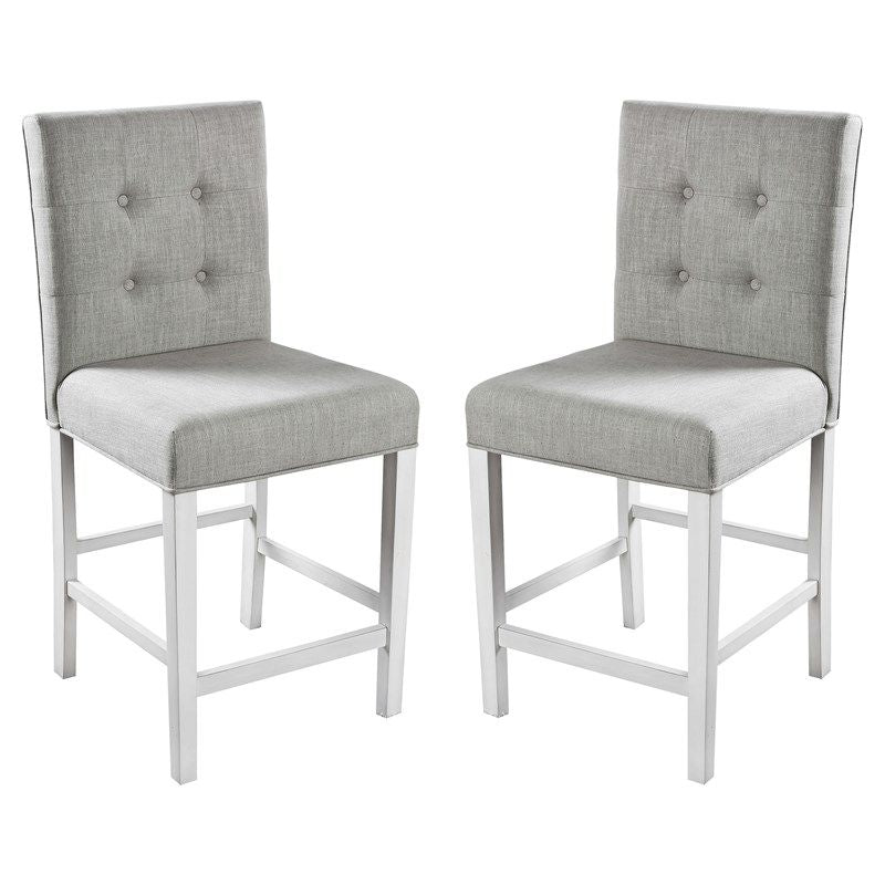 Set of 2pc Counter Height Dining Chairs Antique White Solid wood Dining Room Furniture Tufted Back Padded Upholstered Seat.