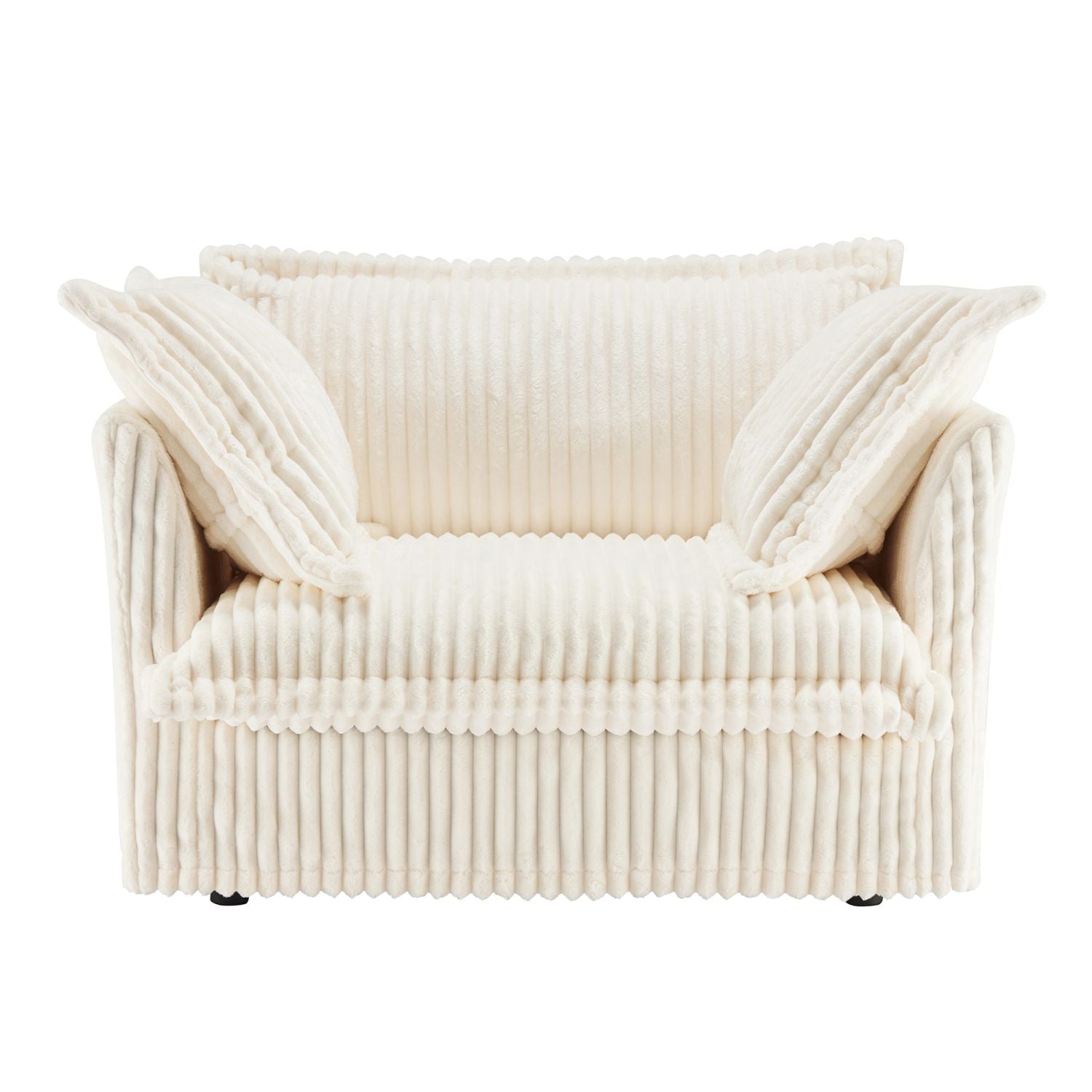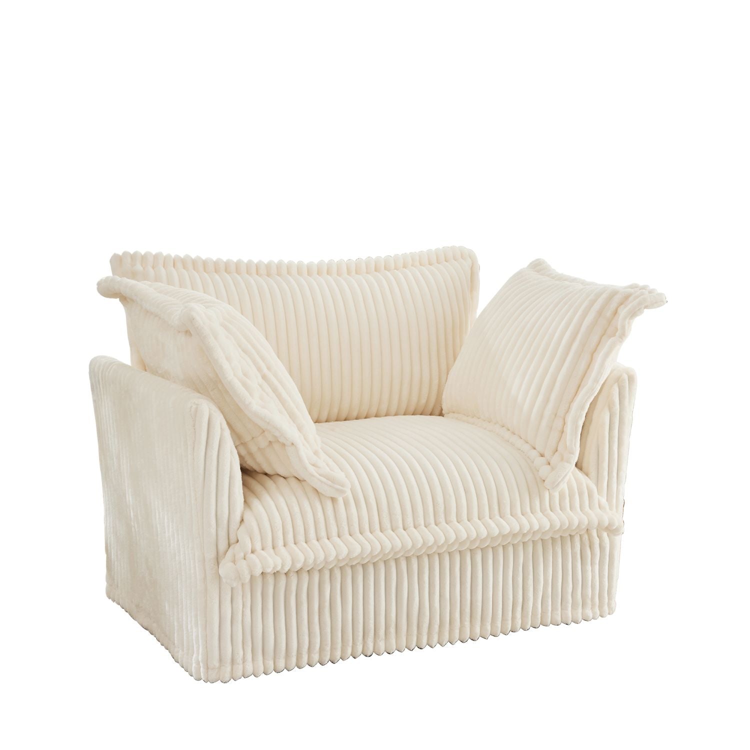 Slip-covered Armchair with 1 Big Back Cushion and 2 Big Toss Pillows, Single Deep Seat Comfy Single Couch Sofa Multiple Large Soft Pillows, Cream Corduroy Fabric